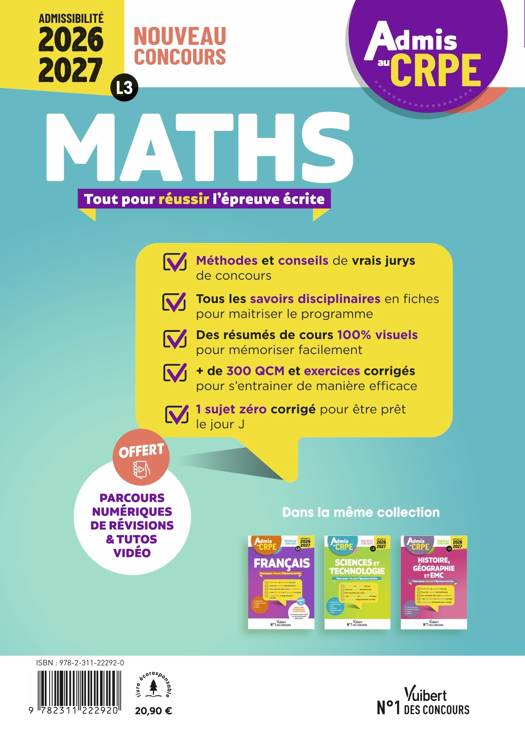Préparez-vous efficacement pour réussir l'épreuve écrite de mathématiques du nouveau concours de professeur des écoles 2026-2027 (L3), grâce :