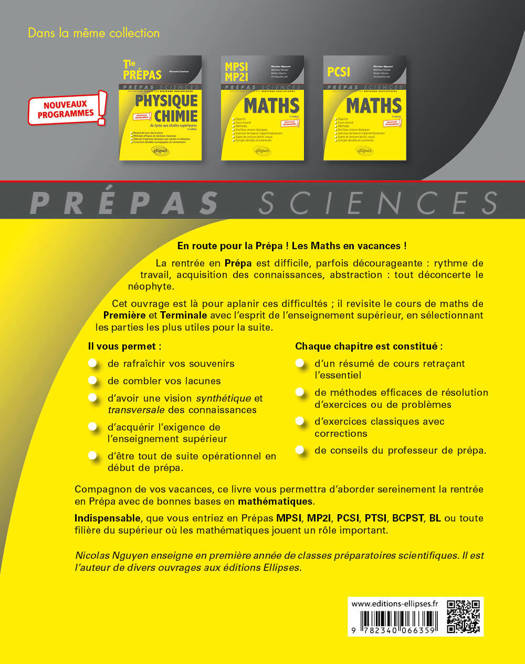 Compagnon de vos vacances, ce livre vous permettra d'aborder sereinement la rentrée en Prépa avec de bonnes bases en mathématiques.