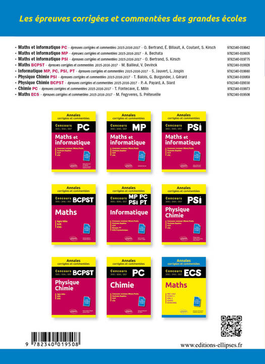 • Pour chaque volume, les épreuves corrigées 2015, 2016 & 2017 • Des corrigés enrichis de commentaires comportant : des points méthodes, des rappels de cours, des remarques sur les questions, des conseils de rédaction, des remarques issus des rapports de jurys, etc. • D'authentiques copies d'étudiants annotées qui accompagnent certains de ces corrigés commentés.