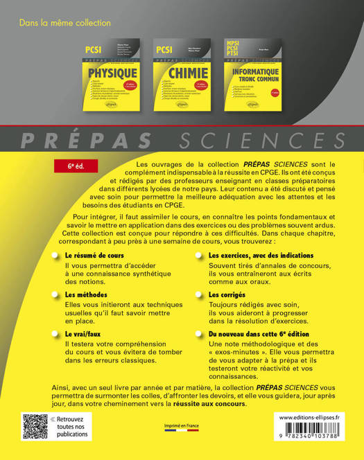 Avec un seul livre par année et par matière, la collection PRÉPAS SCIENCES vous guidera, jour après jour, dans votre cheminement vers la réussite aux concours.