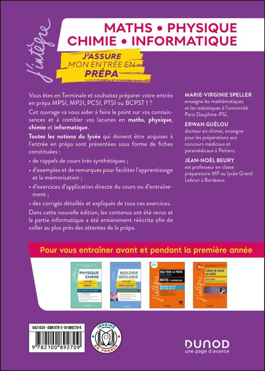 Toutes les notions du lycée qui doivent être acquises à l’entrée en prépa sont présentées sous forme de 103 fiches constituées :