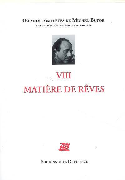Recueil de textes expérimentaux. Les cinq textes composant Matière de rêves sont des poèmes en prose à forme fixe, avec strophes, refrains, rimes et systèmes combinatoires des éléments sonores et lettrés. Ils sont précédés de la suite de Gyroscope et de souvenirs d'un voyage en Chine et suivis du livret d'un opéra.