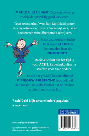 Bestseller Matilda is een fantastisch kinderboek van Roald Dahl. Voorgelezen door Ilse Warringa, onder andere bekend van De Luizenmoeder en Het Klokhuis.Matilda is briljant. Ze kan geweldig goed leren. Toen ze anderhalf was kon Matilda al praten als een volwassene, met 3 jaar kon ze lezen, en al vóór ze 5 was, las ze boeken van wereldberoemde schrijvers als Dickens, Hemingway, Kipling en Steinbeck. Maar haar ouders vinden haar maar lastig en behandelen haar als een onderkruipsel. Matilda besluit zich eens goed kwaad te maken. Ze bedenkt heel slimme straffen voor haar ouders. En als het hoofd van de school, juffrouw Bulstronk, haar ook wil aanpakken, ontdekt Matilda dat ze iets heel bijzonders kan.‘Roald Dahl blijft onverminderd populair.’ – de Volkskrant‘Roald Dahl is de beste kinderboekenschrijver ter wereld.’ – VPRO-gids