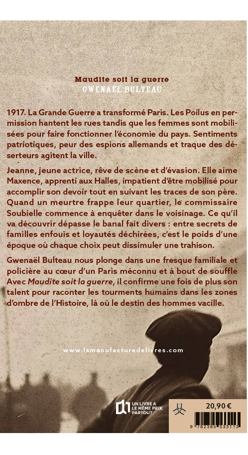 Gwenaël Bulteau nous plonge dans une fresque familiale et policière au cœur d’un Paris méconnu et à bout de souffle. Avec Maudite soit la guerre, il confirme une fois de plus son talent pour raconter les tourments humains dans les zones d’ombre de l’Histoire, là où le destin des hommes vacille.