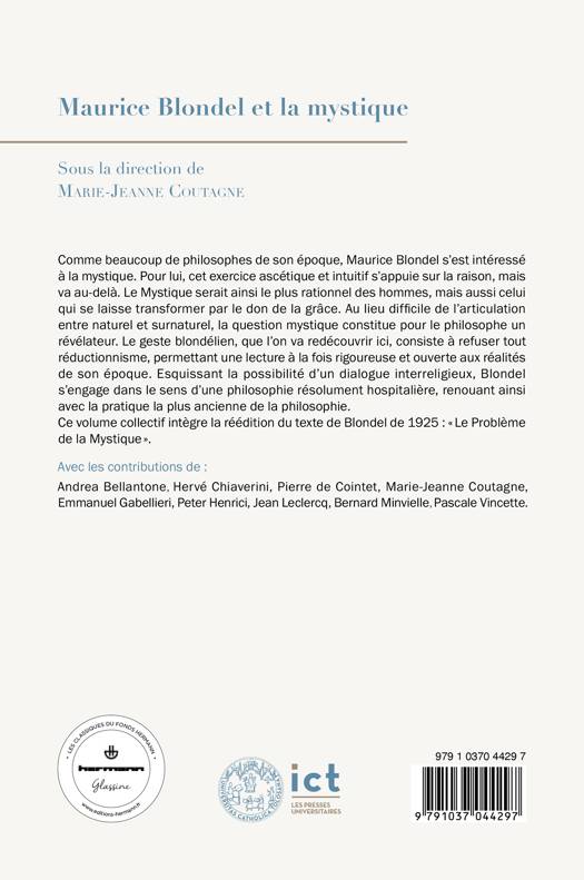 Comme beaucoup de philosophes de son époque, Maurice Blondel s’est intéressé à la mystique. Pour lui, cet exercice ascétique et intuitif s’appuie sur la raison, mais va au-delà. Le Mystique serait ainsi le plus rationnel des hommes, mais aussi celui qui se laisse transformer par le don de la grâce. Au lieu difficile de l’articulation entre naturel et surnaturel, la question mystique constitue pour le philosophe un révélateur. Le geste blondélien, que l’on va redécouvrir ici, consiste à refuser tout réductionnisme, permettant une lecture à la fois rigoureuse et ouverte aux réalités de son époque. Esquissant la possibilité d’un dialogue interreligieux, Blondel s’engage dans le sens d’une philosophie résolument hospitalière, renouant ainsi avec la pratique la plus ancienne de la philosophie. Ce volume collectif intègre la réédition du texte de Blondel de 1925 : « Le Problème de la Mystique ».