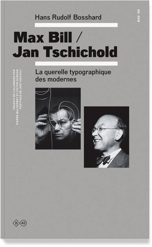 Sitôt qu’il est question d’esthétique, c’est-à-dire d’une réalité qu’on ne peut quantifier avec exactitude, il est inévitable que s’expriment des opinions divergentes, voire irréconciliables. Les typographes n’ont de cesse de donner leurs avis sur l’utilisation, bonne ou mauvaise, de tel caractère typographique, sur l’emploi d’ornements ou sur le format de page optimal. Hans Rudolf Bosshard traite de quelques exemples – de Bodoni et Bertuch à Morris et Morison – pour en arriver à ce qu’on a appelé la « querelle typographique des modernes » qui a opposé Max Bill à Jan Tschichold. Depuis ses débuts, en 1946, jusqu’à nos jours, cette querelle suscite le plus vif intérêt, dans les pays de langue allemande, bien entendu, mais également dans ceux de langue anglo-saxonne. C’est une conférence de Jan Tschichold intitulée « Constances en typographie » qui a mis le feu aux poudres : il abjurait la « nouvelle typographie », précédemment utilisée et défendue d’un point de vue théorique, et prônait un retour à des formes graphiques plus traditionnelles. Max Bill vit dans ce retour à la typographie traditionnelle une attaque contre la typographie moderne. Cette joute musclée, présentée pour la première fois sous forme de livre, a eu comme tribune la revue suisse SchweizerGraphische Mitteilungen.