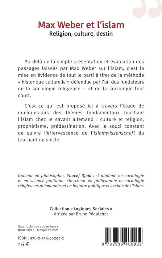 Au-delà de la simple présentation et évaluation des passages laissés par Max Weber sur l'islam, c'est la mise en évidence de tout le parti à tirer de la méthode historique culturelle défendue par l'un des fondateurs de la sociologie religieuse - et de la sociologie tout court. C'est ce qui est proposé ici à travers l'étude de quelques-uns des thèmes fondamentaux touchant l'islam chez le savant allemand: culture et religion, prophétisme, prédestination. Avec le souci constant de suivre l'effervescence de l'Islamwissenschaft du tournant du siècle.