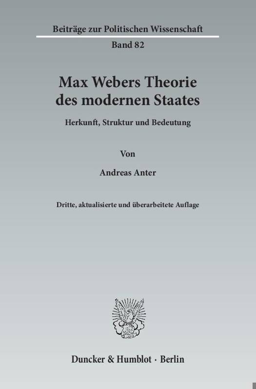 »Anter hat eine von souveränem Überblick über das Umfeld getragene, auch stilistisch ansprechende Studie geschrieben, die für jede Beschäftigung mit dem Thema unumgänglich ist.« (Stefan Breuer am 16.05.1995 zur ersten Auflage, Frankfurter Allgemeine Zeitung)