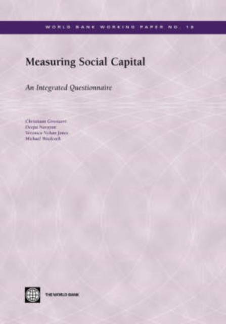 Measuring Social Capital: An Integrated Questionnaire is part of the World Bank Working Paper series. These papers are published to communicate the results of the Bank's ongoing research and to stimulate public discussion. The idea of social capital has enjoyed a remarkable rise to prominence in both the theoretical and applied social science literature over the last decade. While lively debate has accompanied that journey, thereby helping to advance our thinking and clarifying areas of agreement and disagreement, much still remains to be done. One approach that could help bring further advances for both scholars and practitioners is providing a set of empirical tools for measuring social capital. The purpose of this paper is to introduce such a tool with a focus on applications in developing countries. The tool aims to generate quantitative data on various dimensions of social capital as part of a larger household survey (such as the Living Standards Measurement Survey or a household income/expenditure survey). The paper also provides detailed guidance for the use and analysis of the data. In having better empirical information on social capital, the authors aim is to enable greater dialogue between researchers, policy makers, task managers, and poor people themselves, ultimately leading to the design and implementation of more effective poverty reduction strategies.