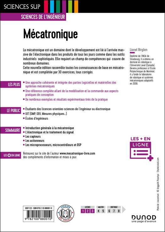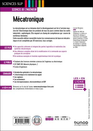 La mécatronique est un domaine dont le développement est lié à l’arrivée massive de l’électronique dans les produits de tous les jours comme dans les outils industriels sophistiqués. Elle requiert un champ de compétences qui couvre de nombreux domaines. Cette nouvelle édition rassemble toutes les connaissances de base en mécatronique et est complétée par 30 exercices, tous corrigés.
