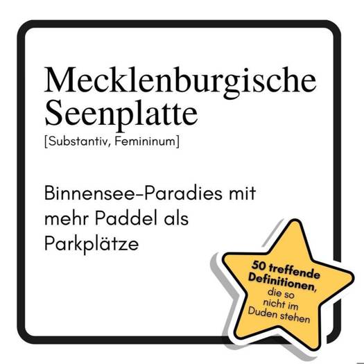 Mehr Paddel als Parkplätze, mehr Seeadler als Selfiesticks: Wer glaubt, die Mecklenburgische Seenplatte sei nur ein ruhiges Wasserparadies, wird hier eines Besseren belehrt. "Mecklenburgische Seenplatte: Binnensee-Paradies mit mehr Paddel als Parkplätze" serviert 50 urkomische Definitionen samt Illustrationen, die zeigen, warum zwischen Müritz, Kranichkonzert und Sanddornkuchen der Alltag garantiert baden geht.Für wen dieses Buch perfekt ist:- Für alle, die Wasserwege lieber als Autobahnen nehmen- Für Fans von norddeutschem Humor und Naturklischees- Für Menschen, die beim Wort "Fischbrötchenweite" schmunzeln müssenOb Müritz, Plauer See oder Moorgeist - hier bekommt jeder See, jedes Dorf und jede Eigenart der Region ihr humorvolles Denkmal gesetzt. Ein Geschenk für alle, die paddeln, picknicken oder einfach nur lachen wollen.Was dieses Buch bietet:- 50 witzige Definitionen rund um die Seenplatte- Passende Illustrationen zu jedem Eintrag- Regionale Eigenheiten mit Augenzwinkern- Perfekt für Einheimische, Urlauber und Wasserliebhaber