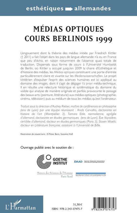 Le projet kittlérien d'expulser l'esprit des sciences humaines est ici appliqué au domaine des images, dont il s'agit de dégager l'a priori média-technique. Il en résulte une relecture historique et systématique du domaine du visible qui analyse de manière originale et parfois provocante le passage des beaux-arts (peinture, littérature), aux médias optiques (photographie, cinéma, télévision) puis au médium de tous les médias qu'est l'ordinateur.