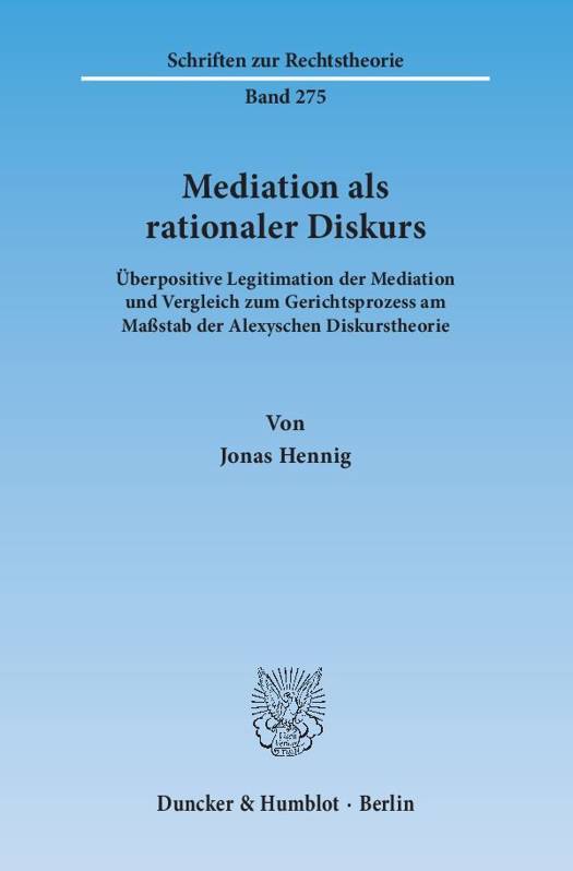 Die rechtswissenschaftliche Arbeit widmet sich der interdisziplinären Grundlagenforschung der Mediation. Es handelt sich soweit ersichtlich um die erste umfassende Diskursanalyse dieses Verfahrens. Jonas Hennig untersucht die bestehenden Vorteile der Mediation von ökonomischen Aspekten bis zur befriedenden Wirkung und stellt heraus, dass diese zwar hilfreich sind, aber die Mediation nicht vollständig legitimieren. Anschließend wird auf Grundlage der alexyschen Diskurstheorie herausgearbeitet, dass Mediation ein auf Richtigkeit abzielender Diskurs ist, der zahlreiche Methoden und Prinzipien beinhaltet, die eine ideale Diskurssituation fördern. Es wird versucht, daraus die wohl erste überpositive und universelle Legitimationsgrundlage der Mediation abzuleiten. Ebenso wird die Diskurssituation der Mediation mit derjenigen des Straf- und Zivilprozesses verglichen.