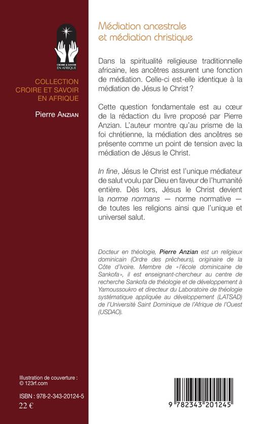 Dans la spiritualité religieuse traditionnelle africaine, les ancêtres assurent une fonction de médiation. Celle-ci est-elle identique à la médiation de Jésus le Christ ? Cette question fondamentale est au coeur de cet ouvrage. L'auteur montre qu'au prisme de la foi chrétienne, la médiation des ancêtres se présente comme un point de tension avec la médiation de Jésus le Christ. In fine, Jésus le Christ est l'unique médiateur de salut voulu par Dieu en faveur de l'humanité entière. Dès lors, Jésus le Christ devient la norme normans de toutes les religions ainsi que l'unique et universel salut.