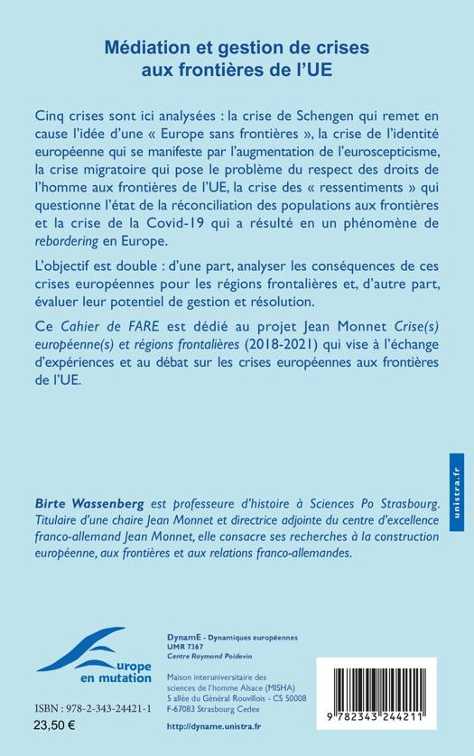 Cinq crises sont ici analysées : la crise de Schengen qui remet en cause l’idée d’une « Europe sans frontières », la crise de l’identité européenne qui se manifeste par l’augmentation de l’euroscepticisme, la crise migratoire qui pose le problème du respect des droits de l’homme aux frontières de l’UE, la crise des « ressentiments » qui questionne l’état de la réconciliation des populations aux frontières et la crise de la Covid-19 qui a résulté en un phénomène de rebordering en Europe. L’objectif est double : analyser les conséquences de ces crises pour les régions frontalières et évaluer leur potentiel de gestion et résolution.