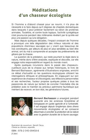 Si l’homme a d’abord chassé pour se nourrir, il n’a aujourd’hui plus de nécessité à le faire. Toutefois, l’activité cynégétique se poursuit. Mais depuis quelques décades, l’impact croissant de l’homme a provoqué une telle dégradation des milieux naturels et des populations d’animaux sauvages que beaucoup de nos concitoyens ont du mal à comprendre et accepter les prélèvements de gibiers par la chasse. La question de la prédation mérite donc d’être analysée, expliquée et discutée. En s’appuyant sur son expérience de chasseur-écologiste, l’auteur propose quelques pistes à tous ceux qui tentent de concilier l’inévitable rôle de prédation avec le maintien de notre précieux patrimoine faunistique.