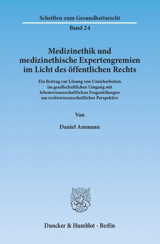 Die Medizinethik ist hinsichtlich ihrer Komplexität und ihrer gesellschaftlichen Bedeutung eines der großen Themen unserer Zeit. So bestehen erhebliche Unsicherheiten etwa in Fragen des normativen Dürfens des medizinischen Könnens oder der gerechten Verteilung knapper finanzieller und sachlicher Ressourcen im Gesundheitswesen. Fragestellungen dieser Art sind weder durch naturwissenschaftliches Fachwissen noch durch den Rekurs auf Recht und Gesetz zu beantworten. Vielmehr bedürfen sie eines interdisziplinären Lösungsansatzes unter Berücksichtigung moralphilosophischer Überlegungen. Da aber in moralpluralistisch ausgerichteten Gesellschaften kein Konsens über das zu operationalisierende Grundmodell ethischer Argumentation existiert, kommt es insbesondere im Praxisalltag zu Entscheidungsproblemen. Darüber hinaus besteht ein Bedürfnis nach unabhängigen Kontrollinstanzen. Deshalb werden medizinethische Fragen zunehmend speziell eingerichteten Gremien zur Beantwortung überlassen. Diese Delegationspraxis begegnet aber zahlreichen rechts- und demokratiestaatlichen Bedenken.