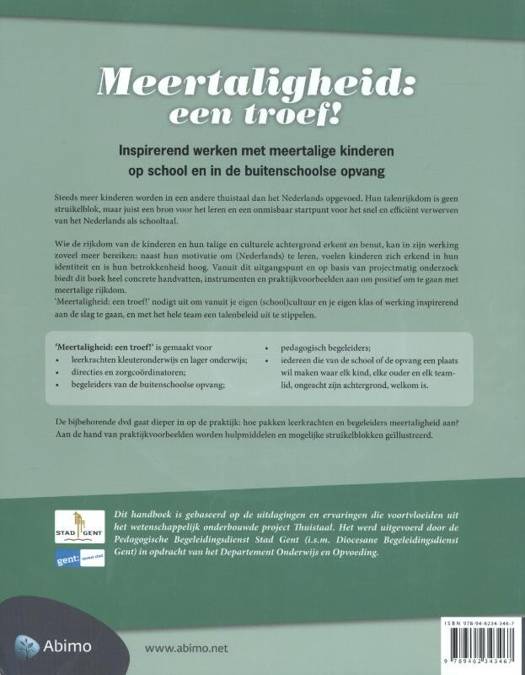 Wie de rijkdom van de kinderen en hun talige en culturele achtergrond erkent en benut, kan in zijn werking zoveel meer bereiken: naast hun motivatie om (Nederlands) te leren, voelen kinderen zich erkend in hun identiteit en is hun betrokkenheid hoog. Vanuit dit uitgangspunt en op basis van projectmatig onderzoek biedt dit boek heel concrete handvatten, instrumenten en praktijkvoorbeelden aan om positief om te gaan met meertalige rijkdom.