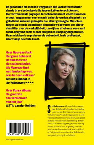 De gedachten die mensen weggooien zijn vaak interessanter dan de brave bedenksels die tussen kaften terechtkomen. Die verfrommelde pogingen tot schoonheid met woeste krassen erdoor, zeggen meer over onszelf en het leven dan alle gelukt- en geliktheid. Vuilnis is gelaagder dan al het geslaagde. Misschien leggen we met de woorden en zinnen die we bewaren een photoshopfilter over de werkelijkheid, terwijl ons afval onze ware aard toont. Bergsma heeft al haar proppen en kladjes gladgestreken. Haar misluksels en probeersels gebundeld. In de prullenbak, daar vind je de echte kunst.