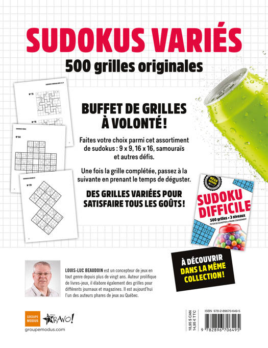 Buffet de grilles à volonté ! Faites votre choix parmi cet assortiment de sudokus : 9 x 9, 16 x 16, samouraïs et autres défis. Une fois la grille complétée, passez à la suivante en prenant le temps de déguster. Des grilles variées pour satisfaire tous les goûts !
