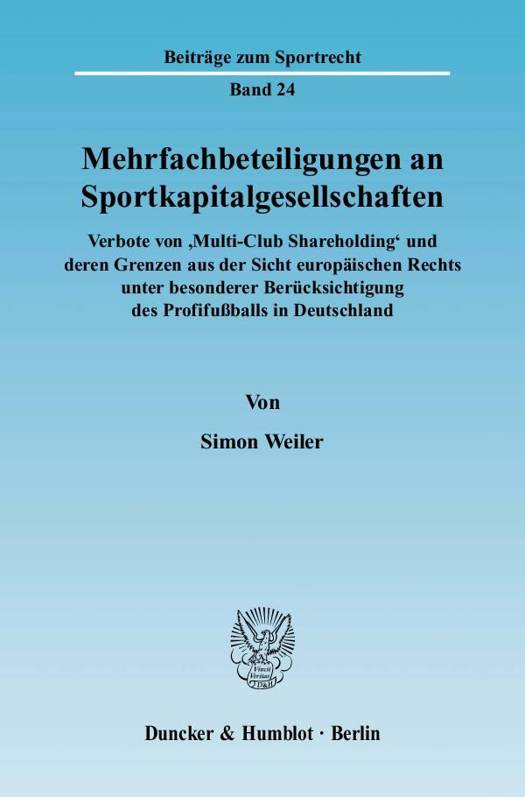 Simon Weiler gibt erstmals einen umfassenden Überblick über aktuelle Verflechtungen im Fußball. Nach einer ausführlichen Darstellung bestehender Verbote von Mehrfachbeteiligungen setzt er sich anhand des europäischen Kartellrechts, der Niederlassungs- und der Kapitalverkehrsfreiheit detailliert mit der rechtlichen Zulässigkeit derartiger Beschränkungen auseinander. Auf Basis einer umfangreichen gesellschaftsrechtlichen Analyse resümiert er, dass die bestehenden Regeln z. T. unverhältnismäßig sind und gegen Europäisches Recht verstoßen. Diese Erkenntnis mündet in praktische Empfehlungen zur Gestaltung wirksamer Regelungen zum Schutz der Integrität des Sports.