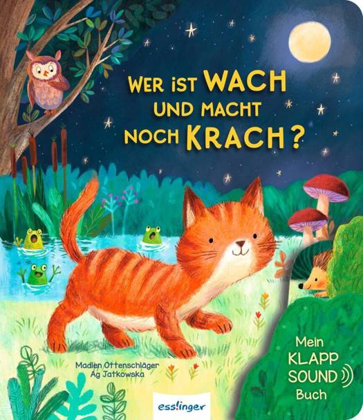 Die kleine Katze ist auf nächtlicher Entdeckungstour. Wer ist denn da noch wach und macht hinter den Büschen Krach? Öffne schnell die Klappe und finde es heraus! Ach so, es ist der Igel, der hinter der Hecke schmatzt und schnauft.
