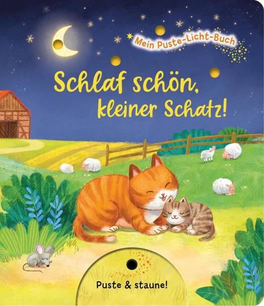 Die im Buch integrierten LED-Lämpchen werden durch den Luftstrom beim Pusten aktiviert und beginnen wie durch Zauberhand zu leuchten! Um die Batterie zu schonen, wird nach 2 Minuten Inaktivität automatisch ein Sleep-Modus aktiviert. Durch erneutes Einschalten ist das Buch für eine neue Puste-Runde einsatzbereit! So können schon die Allerkleinsten den müden Tierkindern beim Einschlafen helfen.