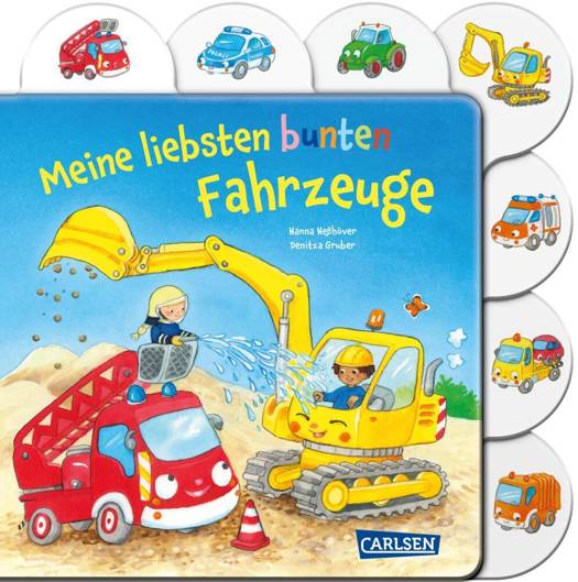 Die kurzen Texte erzählen von verschiedenen Situationen, zum Beispiel auf dem Bauernhof, der Baustelle und im Straßenverkehr und zeigen wie die Fahrzeuge helfen. Das seitliche stabile Register lässt die Kleinen schnell ihr Lieblingsfahrzeug finden.