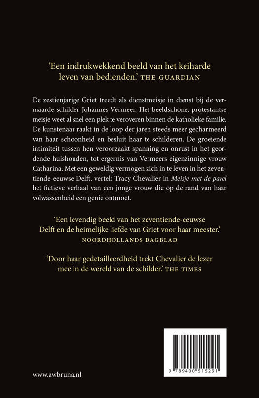 De zestienjarige Griet treedt als dienstmeisje in dienst bij de vermaarde schilder Johannes Vermeer. Het beeldschone, protestantse meisje weet al snel een plek te veroveren binnen de katholieke familie. De kunstenaar raakt in de loop der jaren steeds meer gecharmeerd van haar schoonheid, en besluit haar te schilderen. De groeiende intimiteit tussen hen veroorzaakt spanning en onrust in het geordende huishouden, tot ergernis van Vermeers eigenzinnige vrouw Catharina. Met een geweldig vermogen zich in te leven in het zeventiende-eeuwse Delft, vertelt Tracy Chevalier in Meisje met de parel het fictieve verhaal van een jonge vrouw die op de rand van haar volwassenheid een genie ontmoet.