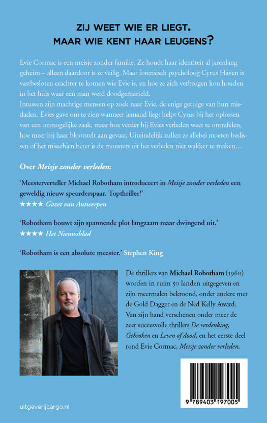 Evie Cormac is een meisje zonder familie. Ze houdt haar identiteit al jarenlang geheim – alleen daardoor is ze veilig. Maar forensisch psycholoog Cyrus Haven is vastbesloten erachter te komen wie Evie is, en hoe ze zich verborgen kon houden in het huis waar een man werd doodgemarteld.