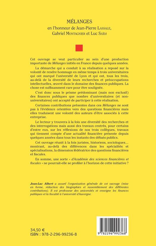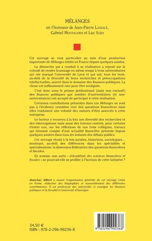 Ce livre rend hommage à trois universitaires qui ont marqué l'université de Lyon et qui ont oeuvré dans le domaine des finances publiques. C'est sous le prisme dominant (mais non exclusif) des finances publiques que nombre d'universitaires (et non universitaires) ont participé. Juristes, historiens, sociologues montrent ici la dimension fédératrice des questions financières et fiscales.