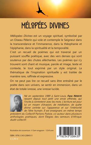 Mélopées Divines est un voyage spirituel, symbolisé par un Oiseau Pèlerin qui vole et contemple le Seigneur dans la transcendance et l’immanence, dans la théophanie et l’épiphanie, dans la spiritualité et la temporalité.