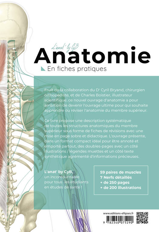 Il traite du membre supérieur et les illustrations sont en grand format pour pouvoir offrir des schémas riches et détaillés. Une attention particulière apportée au design qui favorise la mémorisation mais aussi la consultation sur le long terme. L’ouvrage se présente en double-page image/texte pour faciliter les révisions.