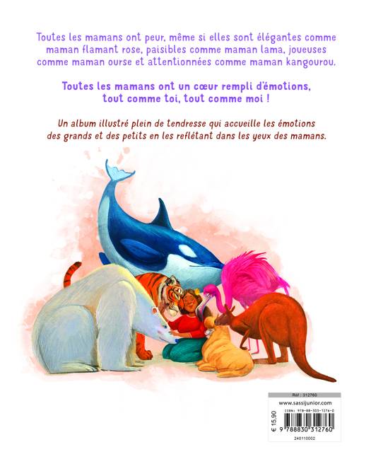 Maman tigre est si occupée ! Et maman orque est si imposante ! Difficile d’imaginer qu’il leur arrive de s’inquiéter. Et pourtant, toutes les mamans ont peur, même si elles sont élégantes comme maman flamant rose, paisibles comme maman lama, joueuses comme maman ourse et attentionnées comme maman kangourou. Toutes les mamans ont un cœur rempli d’émotions, tout comme moi, tout comme toi !