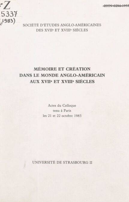 Mémoire et création dans le monde anglo-américain aux XVIIe et XVIIIe siècles EBOOK