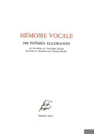 En 2001, l’éditeur DuMont Verlag pose à Thomas Kling la question suivante : « De quels poèmes en langue allemande avons-nous besoin en ce début de siècle ? » C’est en tant que réponse à cette question qu’il faut lire le choix présenté ici : une sélection de poèmes indispensables pour le poète qu’est Thomas Kling, non une anthologie de plus. Mémoire vocale a valeur de programme poétologique : des formules magiques de Mersebourg aux poètes et poétesses d’aujourd’hui, sont présentés ici des textes destinés à mettre en valeur toutes les ressources qu’offre l’allemand sur une dizaine de siècles, dans la diversité de ses registres : langue incantatoire, jargons et hybridations telles que le rotwelsch, l’argot des classes marginalisées, mêlé d’allemand, de néerlandais et de yiddish et parlé surtout dans l’ouest de l’Allemagne, qui a toujours fasciné le Rhénan qu’était Kling. Si la plupart des noms attendus sont présents (Bachmann, Brecht, Celan, Goethe, Hölderlin, Jandl, Nietzsche, Novalis, Rilke…) Il s’agit là d’un choix singulier, à contre-pied du canon littéraire, notamment par la place limitée faite à la tradition classique et romantique, mais qui offre une part belle à la poésie du Moyen Âge, aux audaces de la poésie « baroque », à la diversité inventive des écritures modernes et contemporaines. Celui pour qui le poème est « instrument optique et acoustique de précision qui provient et se met au service de la perception, la perception exacte de la langue » assume ici la subjectivité d’un choix moins de poètes que de textes admirés, ce qui peut expliquer les surprises que réserve Mémoire vocale : la poétesse d’origine juive Gertrud Kolmar, morte en déportation, est placée dans l’immédiat voisinage de Josef Weinheber, un poète autrichien controversé en raison de sa collaboration avec le régime nazi ; Hans-Magnus Enzensberger, dont Thomas Kling n’a jamais fait mystère du peu d’intérêt qu’il portait à sa poésie de « gardien de musée », est représenté, alors que Nelly Sachs, lauréate du Prix Nobel de littérature en 1966, ne l’est pas. De même l’Autrichien Hugo von Hofmannsthal, qui a été un représentant important du symbolisme allemand, est absent de cette anthologie, Kling lui préférant son ami Rudolf Borchardt, un strict formaliste, théoricien d’une « Restauration créatrice » nourrie d’Antiquité et de classicisme. Si « mémoire vocale » n’échappe pas au statut de « haie hégémonique » propre à toute anthologie, en ce qu’elle fixe et valorise un corpus par délimitation d’un jardin clos dans lequel s’épanouit un choix de fleurs, il importe de replacer ce florilège dans le contexte de la poétique de Kling qui considère que « la poésie procède du flux de données, elle est – si elle réussit, si elle fonctionne –, un flux dirigé de données et déclenche un tel flux chez le lecteur ». C’est à la reconfiguration d’un tel flux dynamique que travaille mémoire vocale.