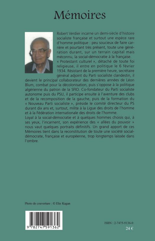 Robert Verdier incarne un demi-siècle d'histoire socialiste française et surtout une espèce rare d'homme politique: peu soucieux de faire carrière et pourtant très présent, toute une génération durant, sur un terrain capital mais méconnu, la social-démocratie à la française. Loyal à la social-démocratie et à quelques hommes choisis qui, à ses yeux, l'incarnent, son expérience des "allées du pouvoir" nous vaut quelques portraits définitifs. Un grand apport de ces Mémoires tient dans la reconstitution de toute une société social-démocrate trop longtemps laissée dans l'ombre.