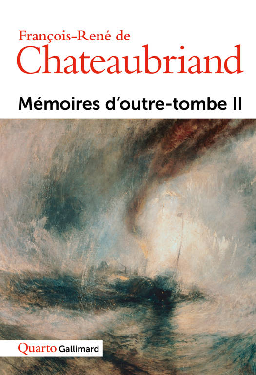 "Moi, bonheur ou fortune, après avoir campé sous la hutte de l'Iroquois et sous la tente de l'Arabe, après avoir revêtu la casaque du sauvage et le cafetan du mamelouk, je me suis assis à la table des rois pour retomber dans l'indigence. Je me suis mêlé de paix et de guerre ; j'ai signé des traités et des protocoles ; j'ai assisté à des sièges, des congrès et des conclaves ; à la réédification et à la démolition des trônes ; j'ai fait de l'histoire, et je la pouvais écrire : et ma vie solitaire et silencieuse marchait au travers du tumulte et du bruit, avec les filles de mon imagination, Atala, Amélie, Blanca, Velléda, sans parler de ce que je pourrais appeler les réalités de mes jours, si elles n'avaient elles-mêmes la séduction des chimères. [...]Je me suis rencontré entre deux siècles comme au confluent de deux fleuves ; j'ai plongé dans leurs eaux troublées, m'éloignant à regret du vieux rivage où je suis né, nageant avec espérance vers une rive inconnue."Chateaubriand, 1837.