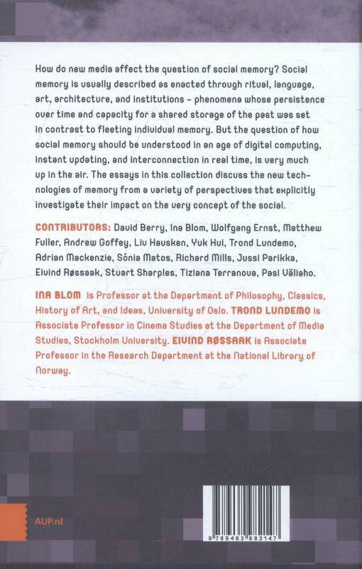 How do new media affect the question of social memory? Social memory is usually described as enacted through ritual, language, art, architecture, and institutions ? phenomena whose persistence over time and capacity for a shared storage of the past was set in contrast to fleeting individual memory. But the question of how social memory should be understood in an age of digital computing, instant updating, and interconnection in real time, is very much up in the air. The essays in this collection discuss the new technologies of memory from a variety of perspectives that explicitly investigate their impact on the very concept of the social.