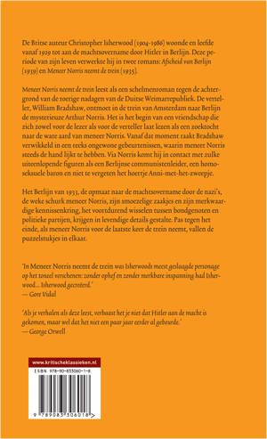 De Britse auteur Christopher Isherwood (1904-1986) woonde en leefde vanaf 1929 tot aan de machtsovername door Hitler in Berlijn. Deze periode van zijn leven verwerkte hij in twee romans: 'Afscheid van Berlijn' (1939) en 'Meneer Norris neemt de trein' (1935).