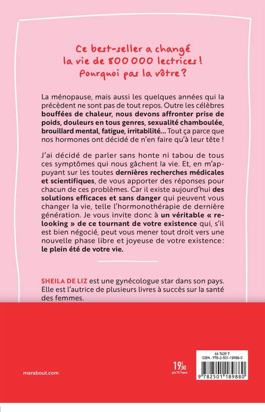 J'ai décidé de parler sans honte ni tabou de tous ces symptômes qui nous gâchent la vie. Et, en m'appuyant sur les toutes dernières recherches médicales et scientifiques, de vous apporter des réponses pour chacun de ces problèmes. Car il existe aujourd'hui des solutions efficaces et sans danger qui peuvent vous changer la vie, telle l'hormonothérapie de dernière génération. Je vous invite donc à un véritable "relooking"  de ce tournant de votre existence qui, s'il est bien négocié, peut vous mener tout droit vers une nouvelle phase libre et joyeuse de votre existence  : le plein été de votre vie.