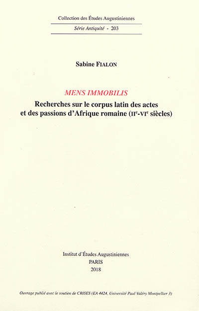 Synthèse sur le corpus hagiographique d'Afrique du Nord établie à partir de trente actes et passions racontant le martyre de chrétiens entre le IIe et la fin du Ve siècle. L'analyse de ces textes, de leurs sources et de leur style permet d'apprécier l'importance que prend au fil du temps la notion de martyre tout autant que la grande culture littéraire des hagiographes.
