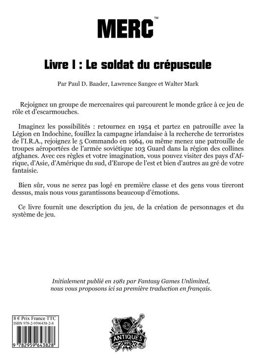 Ce livre fournit une description du jeu, de la création de personnages et du système de jeu.