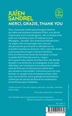 Gina, charmante vieille dame d'origine italienne qui mène une existence modeste à Paris, joue chaque mois aux machines à sous. Et voilà qu'un jour, elle gagne. Et prend une folle décision : elle partagera cet argent avec des personnes qui ont joué un rôle dans sa vie et qu'elle n'a jamais pu remercier. En catimini, elle s'envole sur les traces de son passé...