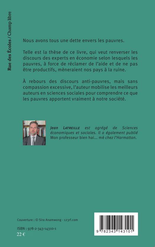 Nous avons tous une dette envers les pauvres. Telle est la thèse de ce livre, qui veut renverser les discours des experts en économie. À rebours des discours anti-pauvres, mais sans compassion excessive, l'auteur mobilise les meilleurs auteurs en sciences sociales pour comprendre ce que les pauvres apportent vraiment à notre société.