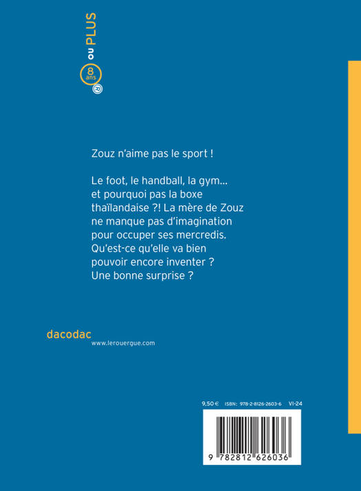 Zouz n'aime pas le sport. Vraiment pas ! Mais sa mère ne veut rien entendre. Mercredi prochain, il ira au foot ou au hand. Ou à la gym. Et pourquoi pas la boxe thaï ? Mercredi après mercredi, Zouz se demande ce que sa mère va encore inventer. Peut-être une bonne surprise ? Un roman écrit par Thomas Gornet et illustré par Clothilde Delacroix qui parle avec humour des activités du mercredi après-midi et des garçons qui ont le droit de ne pas aimer le sport !