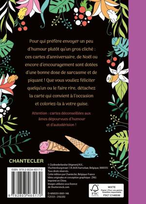 Pour qui préfère envoyer un peu d'humour plutôt qu'un gros cliché : ces cartes d'anniversaire, de Noël ou encore d'encouragement sont dotées d'une bonne dose de sarcasme et de piquant ! Que vous vouliez féliciter quelqu'un ou le faire rire, détachez la carte qui convient à l'occasion et coloriez-la à votre guise.