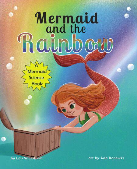 But Fig and Trezzie both love science. Trezzie loves to collect trash that people leave on the lakeshore. She keeps her finds in her treasure box. They come in handy for learning science. Maia, Fig and Trezzie swap science tricks using treasures from the mermaid's secret box. Best of all, they make a rainbow with a mirror, a piece of paper, and a glass of water.