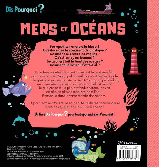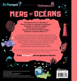 Quelles sont les richesses des mers et des océans ? Qu'est-ce qu'un récif corallien? Quelle faune habite les fonds sous-marins ? Comment les poissons respirent sous l'eau ? Pour tout savoir sur la planète bleue, une lecture interactive et facile d'accès, des textes sous forme de questions réponses, une maquette attractive et dynamique, avec à la fin des jeux pour tester ses connaissances et un glossaire pour aller plus loin.