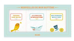 Un ravissant coffret à offrir pour un baptême, comprenant trois petits livres reliés : un livre d'or à remplir, un livre de prières pour les tout-petits et un livre avec des phrases de la Bible adaptées aux tout petits, qui parle d'amour et de bonheur. Un cadeau de baptême, dans le goût des jeunes parents d'aujourd'hui, conçu par Virginie Aladjidi et Caroline Pellissier, spécialistes de livre d'éveil, et illustré par Bérengère Staron, une styliste reconnue dans la mode enfantine.